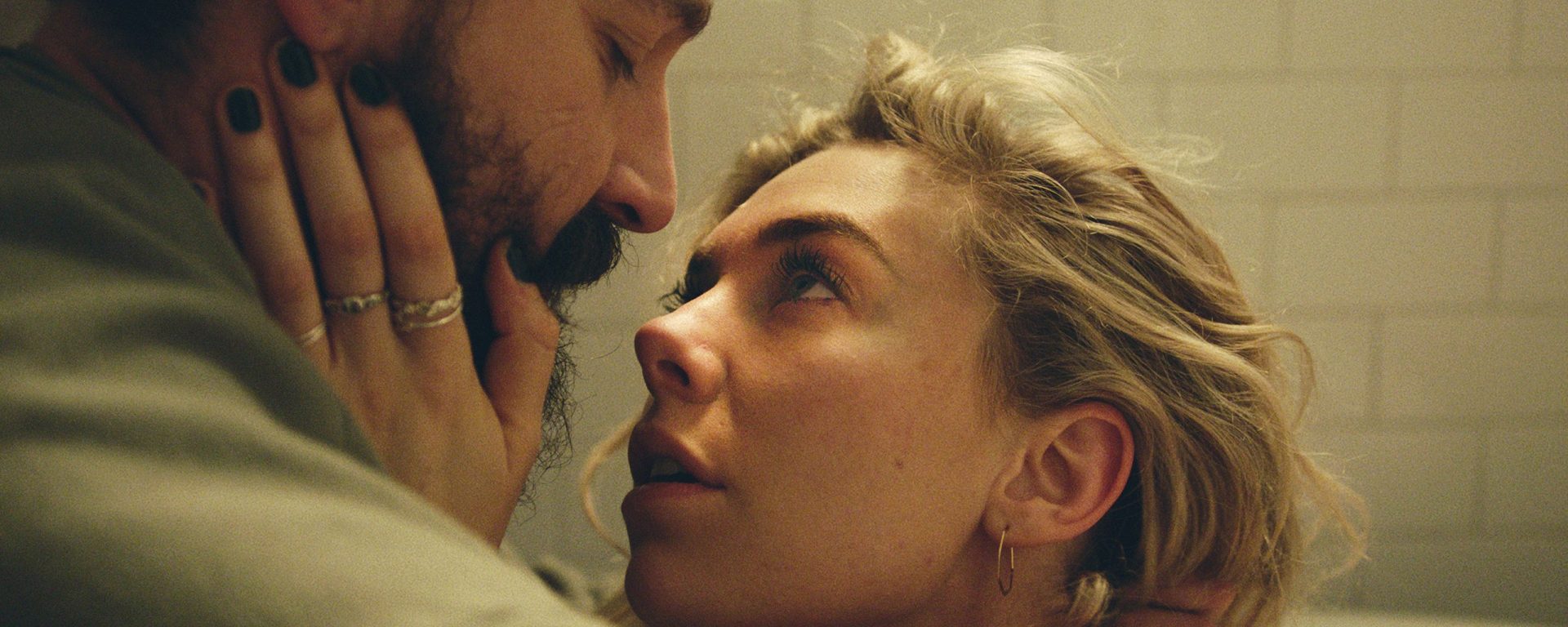 We see Martha (Vanessa Kirby) at a party with her coworkers at the office. She smiles and pretends to enjoy things, but when she’s alone, she is definitely glad it is over. Parties with coworkers can be trying (mandatory fun, anyone?), but is that what she is feeling? Martha looks very pregnant, so maybe she’s just happy to be going home, where she can get off her feet. Sean (Shia LaBeouf), her boyfriend, leaves his job at a drill site so that he can meet Martha and his mother-in-law at a car dealership. Elizabeth (Ellen Burstyn), Martha’s mother, is buying them a brand-new SUV. Sean is miffed because he has money and can pay for it, and believes his mother-in-law’s agenda is to exert control over their lives by buying things for them. He may be right, and Martha seems to agree with him, laughing at his putdowns of her mom. Sean and Martha ultimately accept the generous gift and head home.