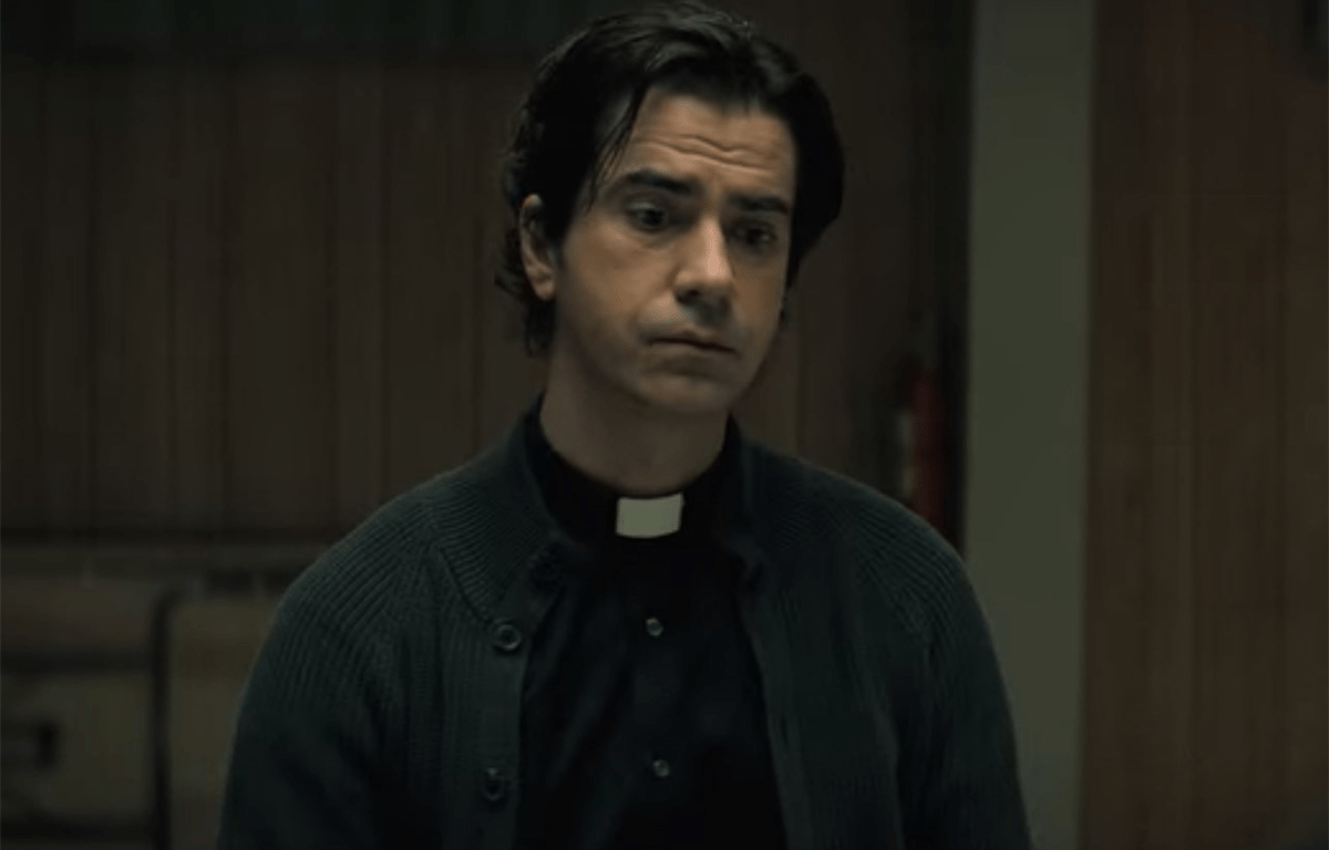 The islanders, who have gradually reduced in number to a total slightly above one hundred, exist on a combination of inertia and faith. Into this environment steps Father Paul Hill (Hamish Linklater), a stand-in for Monsignor Pruitt. (Pruit, Father Paul says, is recuperating on the mainland after an incident while traveling.) Noticeably younger than Pruit, Father Paul brings energy to the daily masses that are attended by few. He also brings with him a shipping trunk that responds twice when Father Paul knocks on it. (No, they’re not doing the old “share and a haircut” bit.)