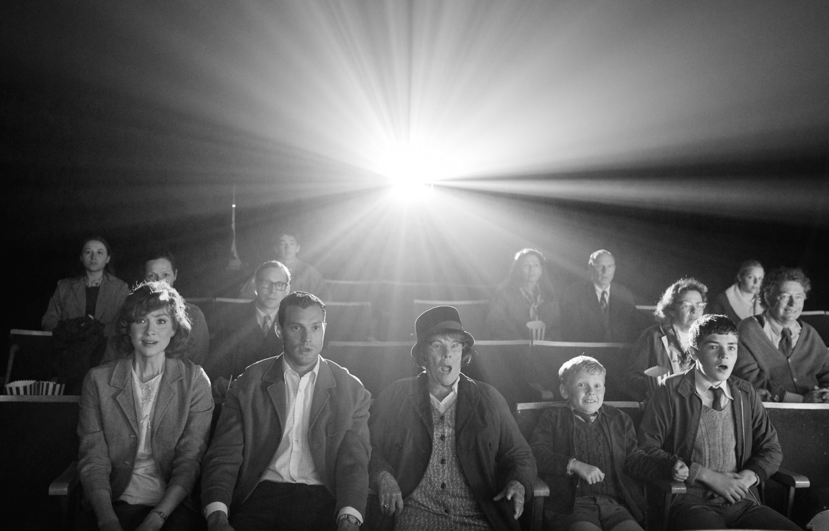 While Buddy is surrounded by a loving and supportive family, his life is not as idyllic as he perceives it to be. His Pa (Jamie Dornan) works in a shipyard in Manchester and is gone for weeks at a time, leaving Ma (Caitriona Balfe) to deal with a steady stream of debt letters and playing dodge the rent collector. In the evening his parents have tense discussions about money, which Buddy hears but doesn’t fully comprehend. At one point, Buddy sheepishly admits to his cousin Vanessa (Nessa Eriksson) that his parents can’t give him money for candy. Buddy understands that money is tight, but only how it impacts him directly.