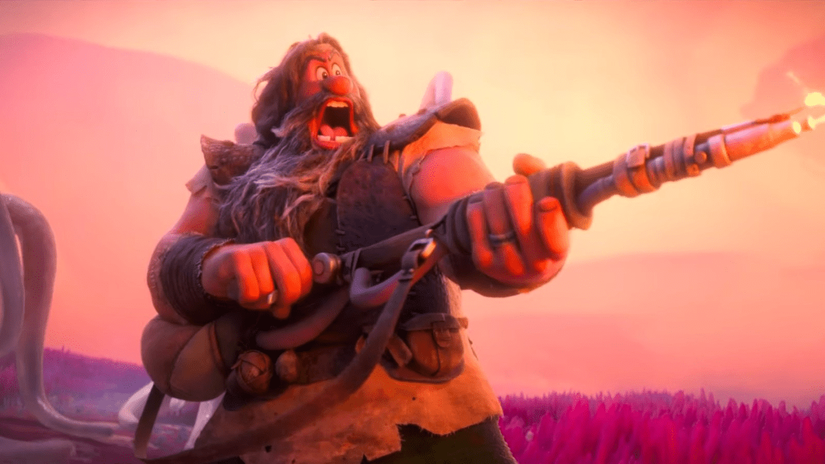 To be fair, the movie begins with a couple decent sight gags. First, when the movie explains how inept the Avalonians are at exploring, it shows a hot air balloon bouncing against a mountainside. Then, when it introduces Jaeger Clade with a hand-drawn sequence, he’s shown trimming his beard with a parana. I can’t remember any attempts at humor after that.