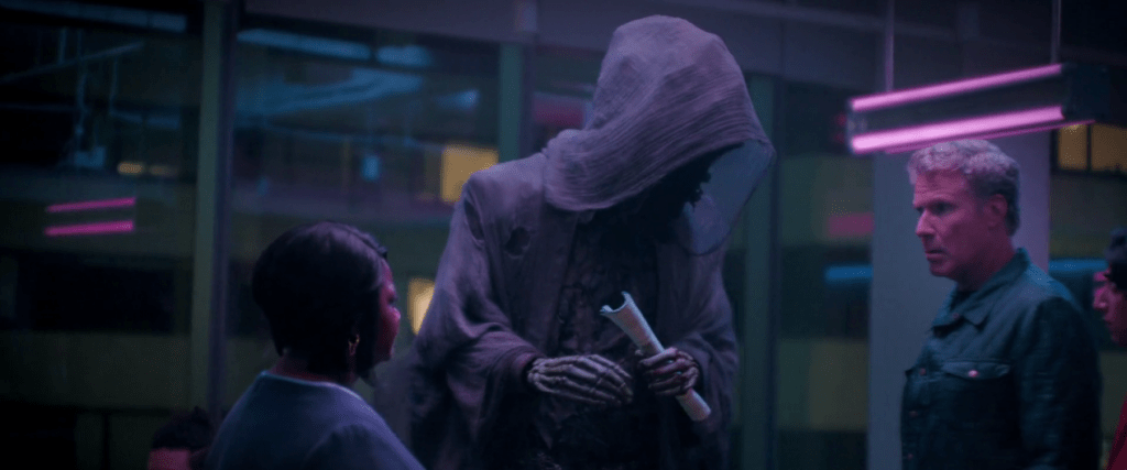After witnessing the results of the operation’s latest project, where Karen (Rose Byrne) becomes a nice “Karen”, we learn about the ghosts responsible for the transformation. Jacob Marley (Patrick Page) oversees the operation, which is led by his three field agents, the ghosts of Christmas Present (Will Ferrell), Past (Sunita Mani) and Future (voice of Tracy Morgan). Present has been in his role for the past forty-six years, which is unusual because after a certain point a ghost can retire to a life among the living. Marley has given Present the option to retire before, but he keeps turning it down for reasons yet-to-be revealed.